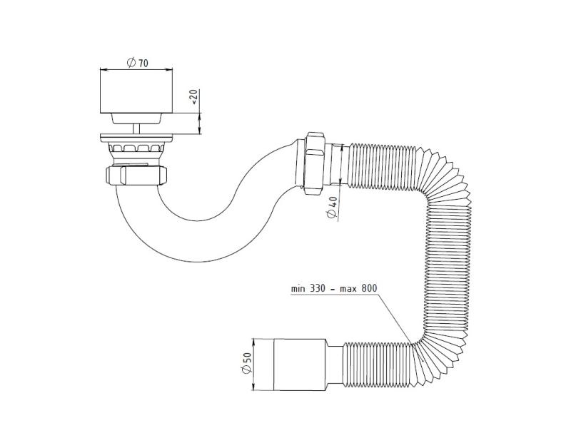 Сифон-автомат для ванны нерж. выпуск 1 1/2" с перелив. и гибкой труб. Flat Steamer SVD-05 1/18