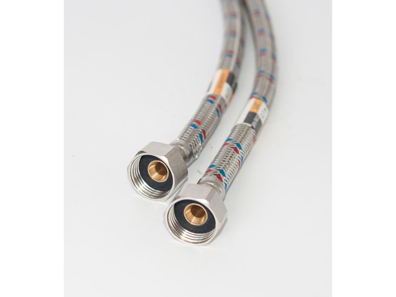 Шланги производятся из нетоксичной резины (EPDM) и имеют оплетку из нержавеющей стальной проволоки. Концы шлангов обеспечены соединительными фитингами с размерами латунных штуцеров и накидных гаек. Надежность шланга и подводки обеспечивается еще и тем, что все соединительные детали выполнены из нержавеющей стали AISI 304, а латунные гайки имеют достаточную высоту и толщину стенок. Продукция сертифицирована в Украине и разработана специально для использования в системах водоснабжения и отопления нашей страны. Подходят для горячей и холодной воды. Основные характеристики: • Длина: 1,5 м • Радиус изгиба: 30 мм • Рабочее давление: 10 bar • Размер резьбы, дюйм 1/2" х 1/2" • Тип подключения: ВВ • Температура: - 5 + 90 ° С • Пропускная способность при давлении 3 bar: 32 л / мин • Внутренний диаметр: 8,5 мм; • Внешний диаметр: 12,5 мм • Применение: для монтажа сантехнических узлов и водопроводного оборудования Шланги ASCO Armatura ― легкие в применении и надежные, послужат вам долгие годы