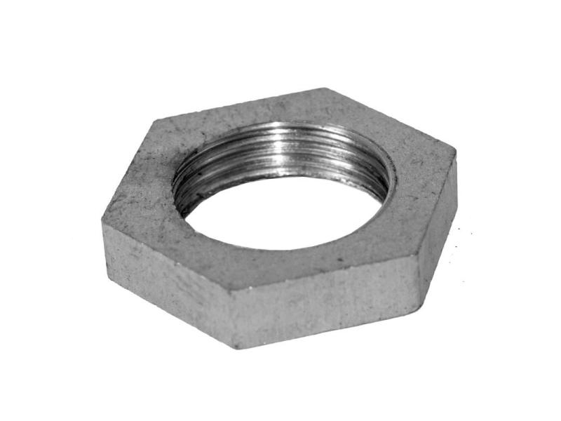 Контргайка стальная, резьба 1/2" дюйма. Фитинги для металлических труб делятся на резьбовые и сварные. Их основное предназначение – соединение двух и более контуров разного сечения. Стальные конструкции отлично зарекомендовали себя за счет высокой степени прочности, надежности, однако не стоит забывать о том, что для создания герметичного соединения цилиндрическую резьбу уплотняют паклей, смоченной железным суриком, замешанным на натуральной олифе, лентой-фум, или специальной уплотняющей нитью. На основании материала, фитинги могут иметь резьбу разной длины. Используются для соединения труб в системах отопления, водопровода, газопровода и других системах, работающих в условиях неагрессивных сред (вода, насыщенный водяной пар, горючий газ и др.) при температуре проводимой среды не выше 175 °С и давлении Р = 1,6 МПа. Сталь, как и любой металл, боится коррозии. Для того чтобы защитить металл от коррозии, сталь покрывается слоем цинка. И изделия называются оцинкованными. Они обладают повышенным эксплуатационным ресурсом.