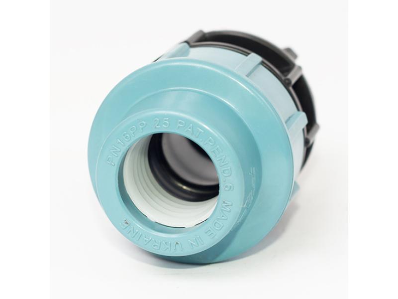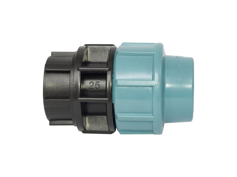 Муфта для полиэтиленовых труб, внутренняя резьба 3/4", диаметр Ø25. Компрессионные фитинги применяются для создания наружных водопроводов, поливочных систем и используются преимущественно для транспортировки холодной воды. Достоинства: доступность по цене, небольшой вес, быстрый и легкий монтаж, не требующий дополнительных инструментов, возможность создания разъемных соединений. Номинальная температура для применения – 20˚С, а максимальная рабочая температура – до 60˚С в пределах рабочего диапазона труб. Номинальное давление зависит от диаметра: для 16, 20, 25, 32, 40, 50, 63 мм оно составляет 16 бар, для фитингов 75, 90 и 110 – 12,5 бар соответственно. Компрессионные фитинги производятся в соответствии со стандартами UNI, ISO, DIN, NF, резьбы в соответствии с UNI, а фланцевые соединения соответствуют требованиям UNI и DIN. Все фитинги выполнены в соответствии с общими техническими условиями. Для изготовления фитингов используется черный полипропилен для корпуса, черная прокладка из нитрильной резины, белое зажимное кольцо из полиацетата и гайка из полипропилена.