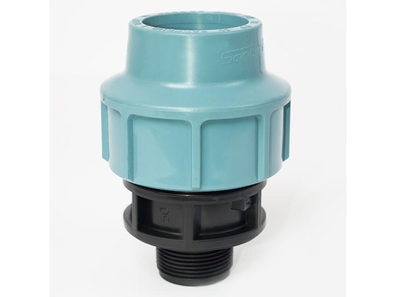 Муфта зажимная для полиэтиленовых труб, внешняя резьба 1 1/4 ", диаметр 50 мм. Компрессионные фитинги применяются для создания наружных водопроводов, поливочных систем и используются преимущественно для транспортировки холодной воды. Достоинства: доступность по цене, небольшой вес, быстрый и легкий монтаж, не требующий дополнительных инструментов, возможность создания разъемных соединений. Номинальная температура для применения 20˚С, а максимальная рабочая температура – до 60˚С в пределах рабочего диапазона труб. Номинальное давление зависит от диаметра: для 16, 20, 25, 32, 40, 50, 63 мм оно составляет 16 бар, для фитингов 75, 90 и 110 – 12,5 бар соответственно. Компрессионные фитинги производятся в соответствии со стандартами UNI, ISO, DIN, NF, резьбы в соответствии со UNI, а фланцевые соединения соответствуют требованиям UNI и DIN. Все фитинги выполнены в соответствии с общими техническими условиями. Для изготовления фитингов используется черный полипропилен для корпуса, черная прокладка из нитриловой резины, белое зажимное кольцо из полиацетата и гайка из полипропилена.