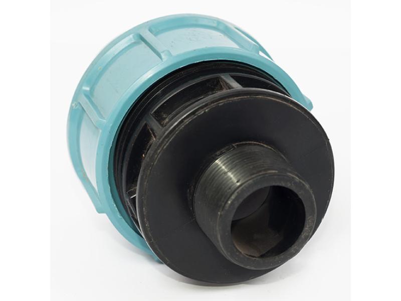 Муфта зажимная для полиэтиленовых труб, внешняя резьба 11/2", диаметр 63 мм. Компрессионные фитинги применяются для создания наружных водопроводов, поливочных систем и используются преимущественно для транспортировки холодной воды. Достоинства: доступность по цене, небольшой вес, быстрый и легкий монтаж, не требующий дополнительных инструментов, возможность создания разъемных соединений. Номинальная температура для применения – 20˚С, а максимальная рабочая температура – до 60˚С в пределах рабочего диапазона труб. Номинальное давление зависит от диаметра: для 16, 20, 25, 32, 40, 50, 63 мм оно составляет 16 бар, для фитингов 75, 90 и 110 – 12,5 бар соответственно. Компрессионные фитинги производятся в соответствии со стандартами UNI, ISO, DIN, NF, резьбы в соответствии со UNI, а фланцевые соединения соответствуют требованиям UNI и DIN. Все фитинги выполнены в соответствии с общими техническими условиями. Для изготовления фитингов используется черный полипропилен для корпуса, черная прокладка из нитриловой резины, белое зажимное кольцо из полиацетата и гайка из полипропилена.