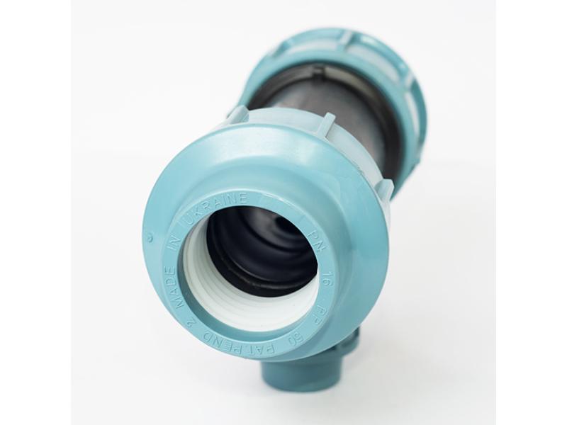 Тройник, редукционный для полиэтиленовых труб Ø50 х 25 х 50. Компрессионные фитинги применяются для создания наружных водопроводов, поливочных систем и используются преимущественно для транспортировки холодной воды. Достоинства: доступность по цене, небольшой вес, быстрый и легкий монтаж, не требующий дополнительных инструментов, возможность создания разъемных соединений. Номинальная температура для применения – 20˚С, а максимальная рабочая температура – до 60˚С в пределах рабочего диапазона труб. Номинальное давление зависит от диаметра: для 16, 20, 25, 32, 40, 50, 63 мм оно составляет 16 бар, для фитингов 75, 90 и 110 – 12,5 бар соответственно. Компрессионные фитинги производятся в соответствии со стандартами UNI, ISO, DIN, NF, резьбы в соответствии со UNI, а фланцевые соединения соответствуют требованиям UNI и DIN. Все фитинги выполнены в соответствии с общими техническими условиями. Для изготовления фитингов используется черный полипропилен для корпуса, черная прокладка из нитриловой резины, белое зажимное кольцо из полиацетата и гайка из полипропилена.