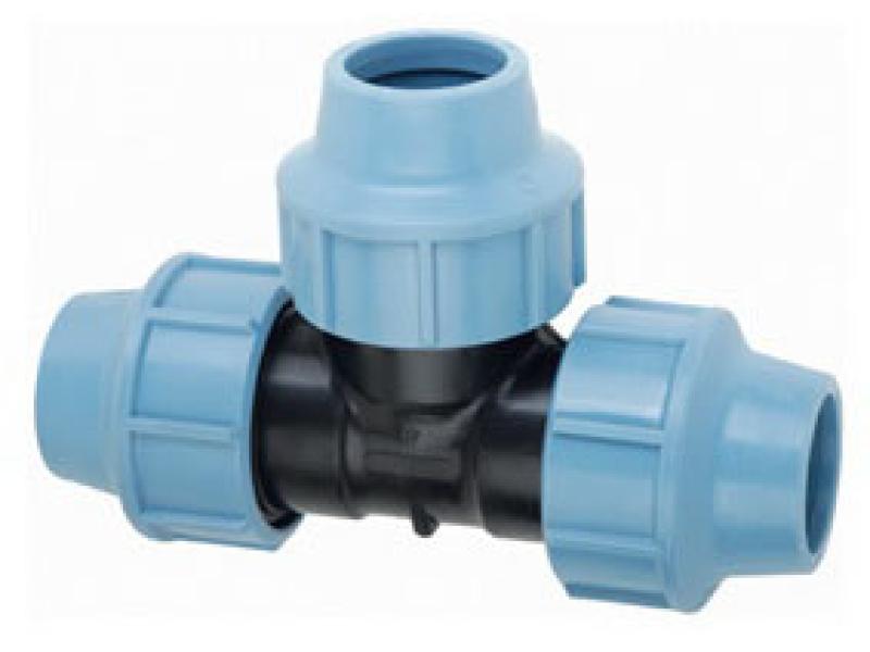 Тройник, зажимной для полиэтиленовых труб Ø50. Компрессионные фитинги применяются для создания наружных водопроводов, поливочных систем и используются преимущественно для транспортировки холодной воды. Достоинства: доступность по цене, небольшой вес, быстрый и легкий монтаж, не требующий дополнительных инструментов, возможность создания разъемных соединений. Номинальная температура для применения 20˚С, а максимальная рабочая температура – до 60˚С в пределах рабочего диапазона труб. Номинальное давление зависит от диаметра: для 16, 20, 25, 32, 40, 50, 63 мм оно составляет 16 бар, для фитингов 75, 90 и 110 – 12,5 бар соответственно. Компрессионные фитинги производятся в соответствии со стандартами UNI, ISO, DIN, NF, резьбы в соответствии со UNI, а фланцевые соединения соответствуют требованиям UNI и DIN. Все фитинги выполнены в соответствии с общими техническими условиями. Для изготовления фитингов используется черный полипропилен для корпуса, черная прокладка из нитриловой резины, белое зажимное кольцо из полиацетата и гайка из полипропилена.