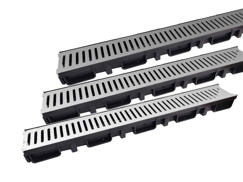 Уличный дренаж. лоток Drainland в компл 3шт*(130*75*1000мм) крышка нерж. "дождик" MesaTeknik