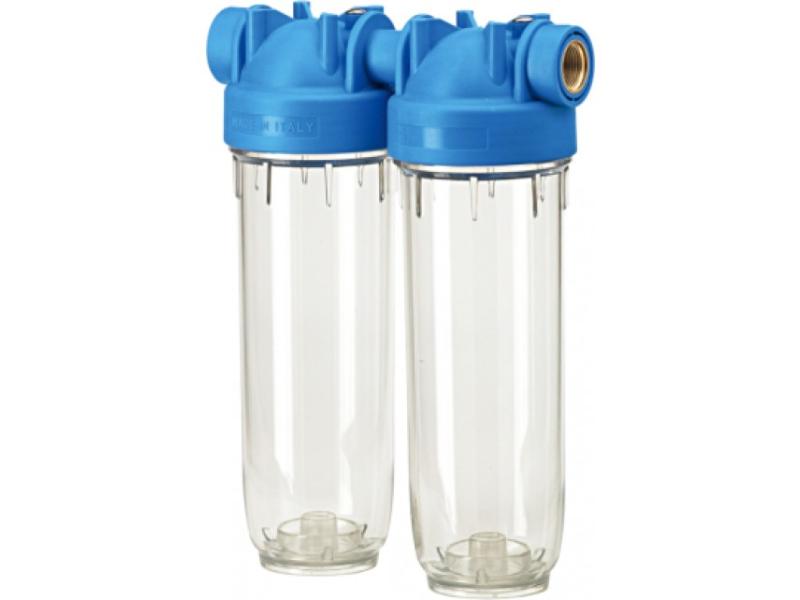 Двухколбовый, стандарт 10" тонкий. Подходят стандартные картриджи (SX) и картриджи с двумя уплотнительными кольцами (BX). В комплектацию входят ключ и кронштейн. Применяются для фильтрации и обработки воды с нейтральным рН, а также для фильтрации питьевой воды. Бытовое применение магистрального фильтра: используются для фильтрации питьевой воды, защиты труб, водонагревателей, стиральных машин, а также другой бытовой техники. Техническое применение магистрального фильтра: Применяется для предфильтрации и микрофильтрации воды. Также используется для защиты насосов, умягчителей воды, деминирализаторов и установок обратного осмоса, систем понижения давления. Технические характеристики корпуса магистрального фильтра:¶Максимальное рабочее давление - 8 бар.¶Максимальная рабочая температура - 45 ° С