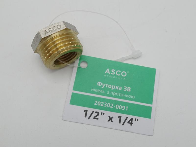 Футорка 1/2"*1/4" НВ никель. с проточкой ASCO 1/400