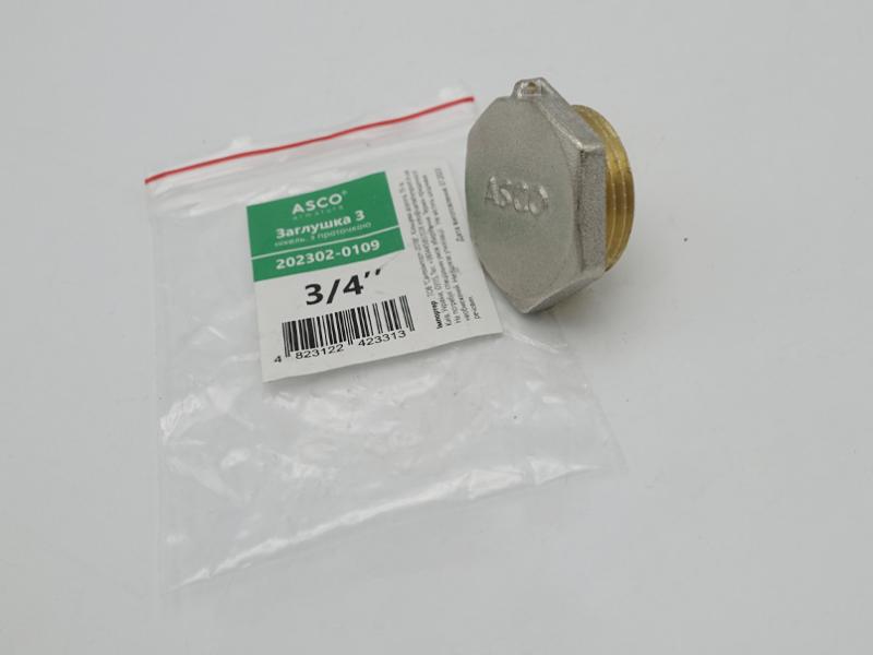 Заглушка 3/4" Н никель. с проточкой ASCO 1/250