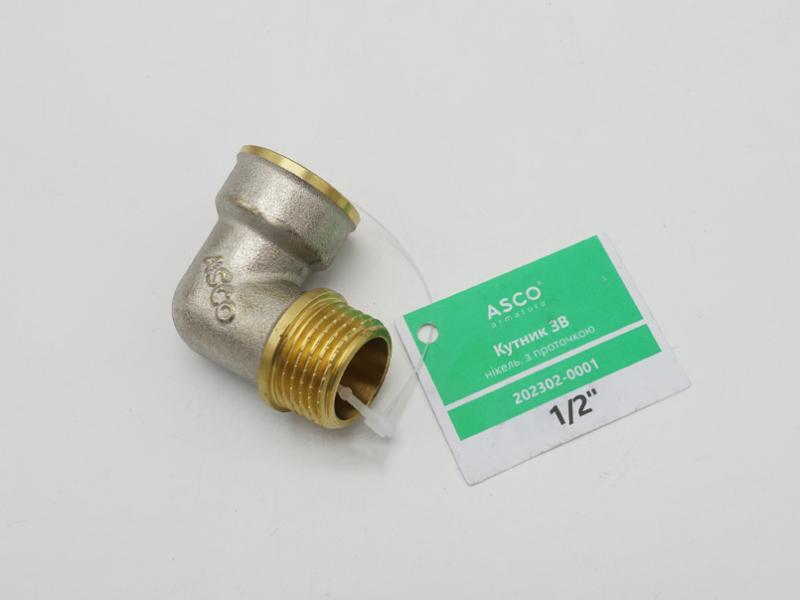 Угольник 1/2" НВ никель. с проточкой ASCO 1/100