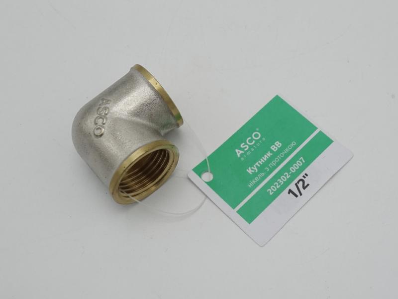 Угольник 1/2" ВВ никель. с проточкой ASCO 1/150