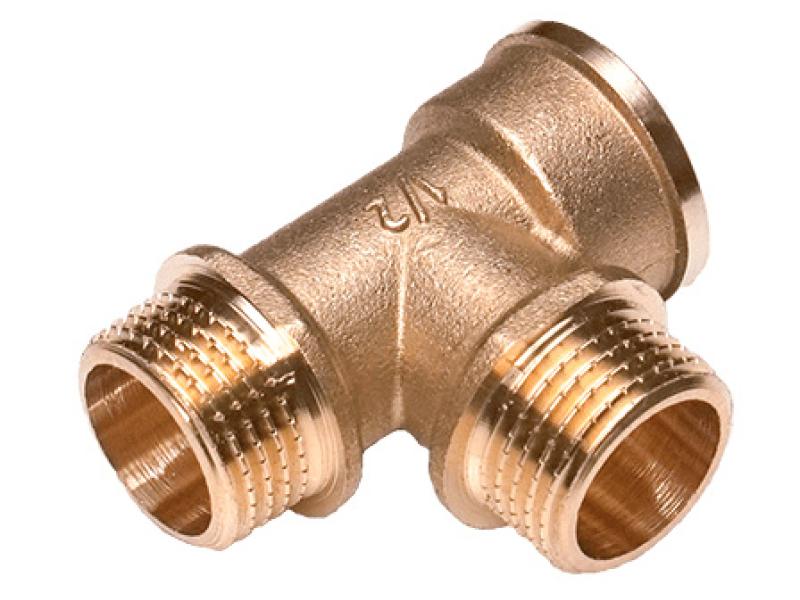 Тройник латунный без покрытия, размер 3/4", внутренняя-наружная-наружная резьба. Резьбовые фитинги производятся в Украине (Харьков). Эта продукция пользуется большим спросом по двум главным причинам: действительно большой ассортимент товара и очень доступные цены. Фитинги делаются из непокрытой латуни. Они представлены в широкой размерной линейке и очень разные по типам. Бренд предлагает равнопроходные и редукционные муфты, угольники, тройники, крестовины, заглушки, ниппели, переходники, удлинители, сгоны, футорки, врезки в бак, штуцеры. Продукция поставляется с наружной и внутренней резьбой размером от 1/2 до 2 дюймов. Она используется для создания трубопроводов в системах водо- и газоснабжения, также может применяться при переходе с трубопроводов, выполненных из разных материалов. Фитинги созданы для использования на отечественном рынке и активно конкурируют там с продукцией более дорогих брендов.