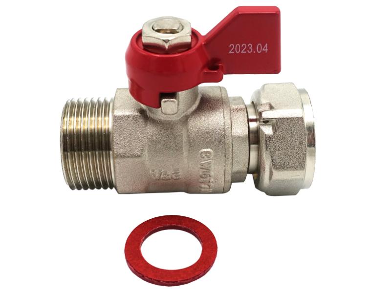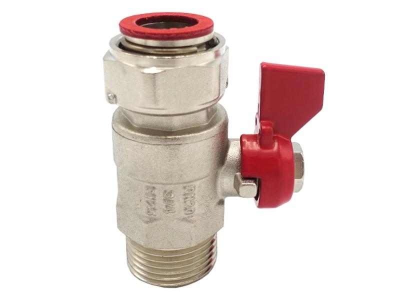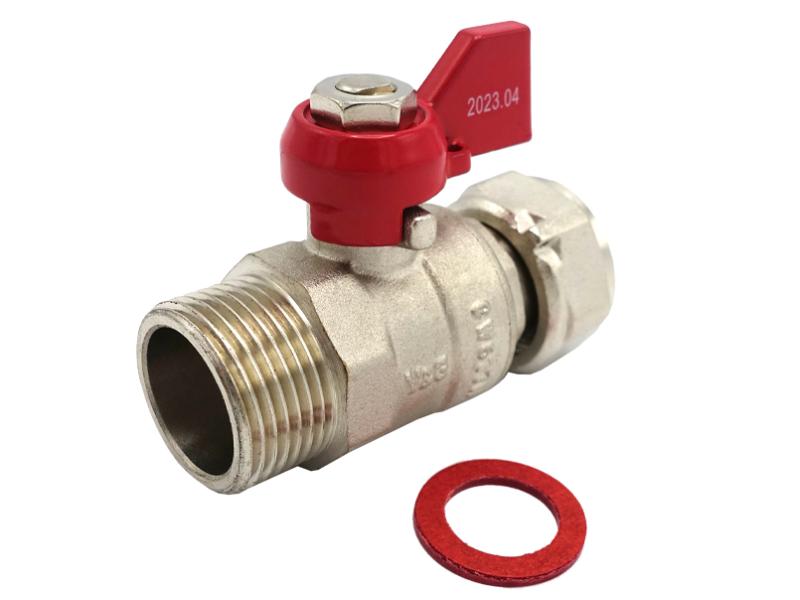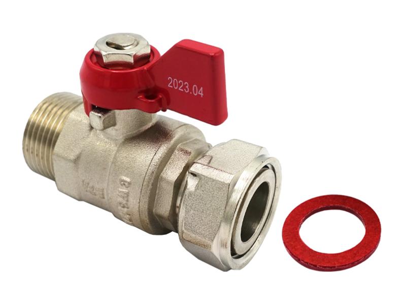Кран шаровой прямой с накидной гайкой и прокладкой: применяется в качестве запорной арматуры в хозяйственно-питьевых, отопительных системах для транспортировки любых неагрессивных сред к материалу изделия. Тип соединения: резьба – внутренняя/наружная. ТЕХНИЧЕСКИЕ ХАРАКТЕРИСТИКИ: 1. Рабочее давление: 2,5 мПа (25 бар). 2. Рабочая температура: от –20 до +120°С; от -20 до +120°С. МАТЕРИАЛЫ: Корпус: латунь CW617N (ЛС 59-2), затвор: латунь CW617N (ЛС 59-2), уплотнение штока: PTFE (фторопласт). Ручка-"бабочка": сталь оцинкованная/алюминий. Уплотнение шарового затвора: PTFE (фторопласт). Уплотнение угона: EPDM (этилен-пропиленовый каучук). ОСОБЕННОСТИ: 1. Позволяют выполнить поворот без использования дополнительных фитингов. 2. Возможность снятия накидной гайки.