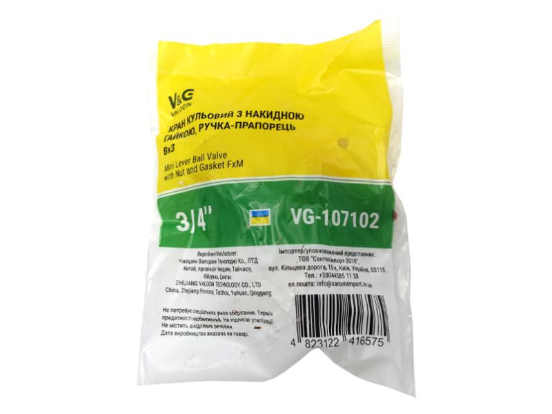 Кран шаровый Valogin прямой 3/4"ВН с накидной гайкой VG-107102 1/16 шт