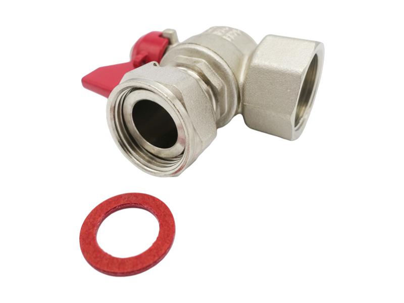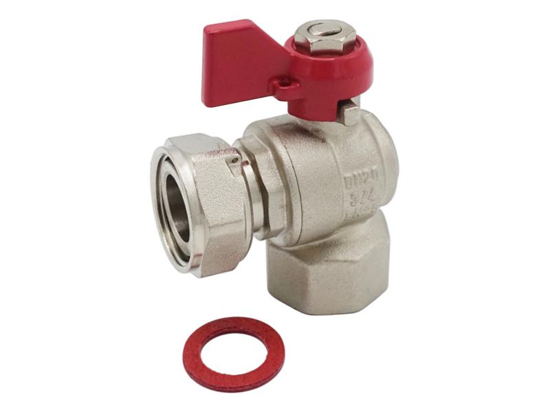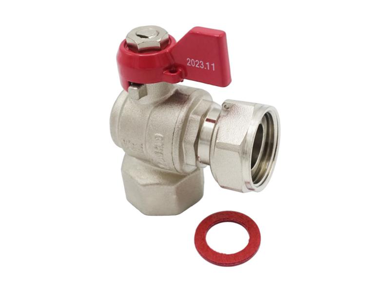 Кран шаровой угловой с накидной гайкой и прокладкой: применяется в качестве запорной арматуры в хозяйственно-питьевых, отопительных системах для транспортировки любых неагрессивных сред к материалу изделия. Тип соединения: резьба - внутренняя/внутренняя. ТЕХНИЧЕСКИЕ ХАРАКТЕРИСТИКИ: 1. Рабочее давление: 2,5 мПа (25 бар). 2. Рабочая температура: от –20 до +120°С; от -20 до +120°С. МАТЕРИАЛЫ: Корпус: латунь CW617N (ЛС 59-2), затвор: латунь CW617N (ЛС 59-2), уплотнение штока: PTFE (фторопласт). Ручка-"бабочка": сталь оцинкованная/алюминий. Уплотнение шарового затвора: PTFE (фторопласт). Уплотнение угона: EPDM (этилен-пропиленовый каучук). ОСОБЕННОСТИ: 1. Позволяют выполнить поворот без использования дополнительных фитингов. 2. Возможность снятия накидной гайки.