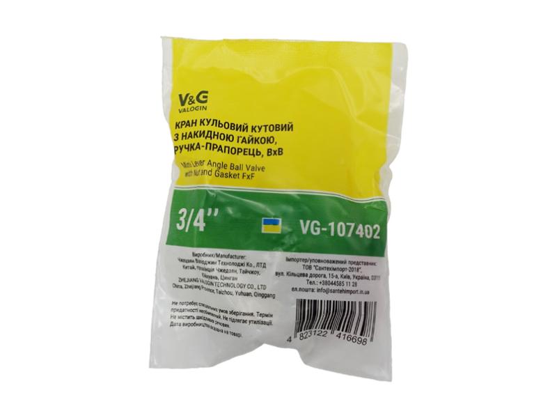 Кран шаровый Valogin угловой 3/4"ВВ с накидной гайкой VG-107402 1/14 шт