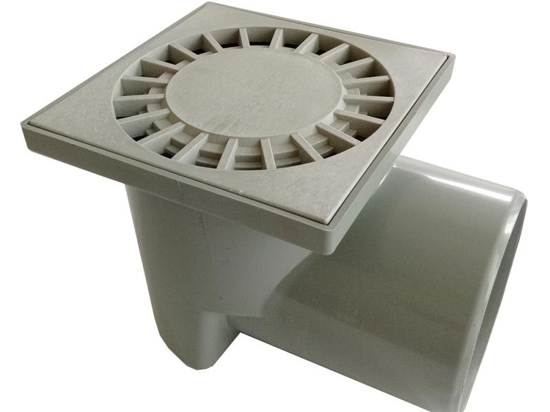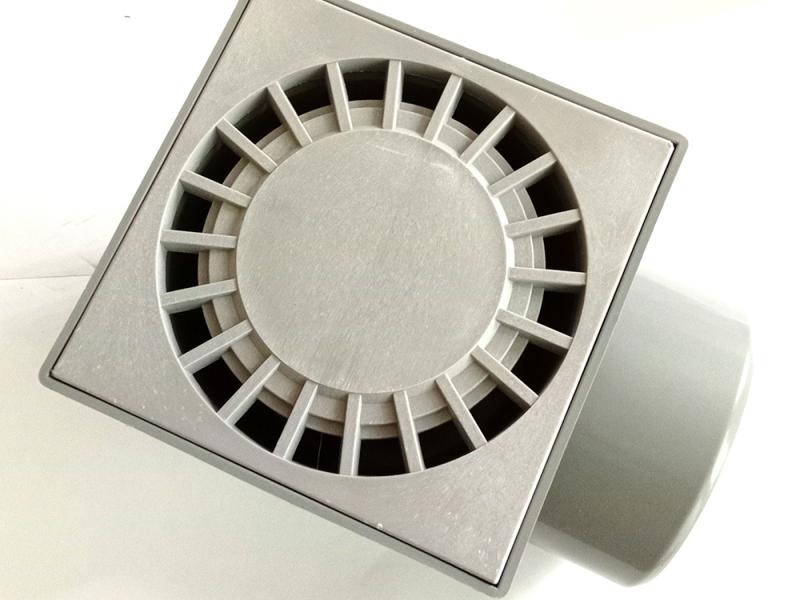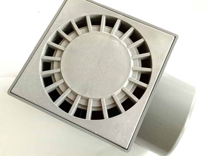Горизонтальный пластиковый душевой трап торговой марки Santehplast (Сантехпласт) с гидрозатвором серого цвета. Размер решетки - 15х15 см. Узор решетки - солнышко. Диаметр выпуска - DN110. Производство – Харьков, Украина.