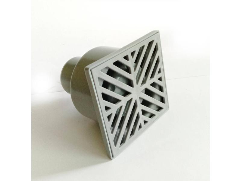 Вертикальный пластиковый душевой трап торговой марки Santehplast (Сантехпласт) с гидрозатвором серого цвета. Размер решетки - 10х10 см. Узор решетки - снежинка. Диаметр выпуска - DN50. Производство – Харьков, Украина.