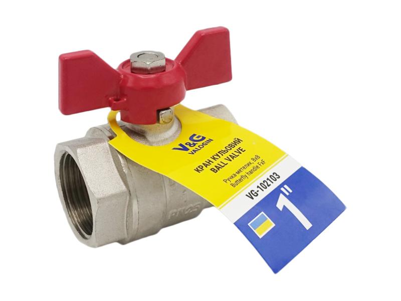 Кран шаровой Valogin Optima 1" ВВ красная бабочка VG-102103 1/24 шт