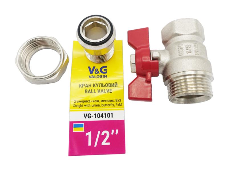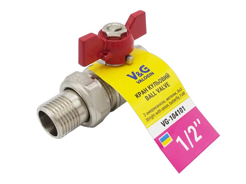 Кран-американка прямой 1/2" ВН Valogin Optima красная бабочка VG-104101 1/18 шт