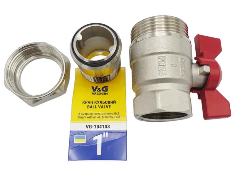 Кран-американка прямой 1" ВН Valogin Optima красная бабочка VG-104103 1/16 шт