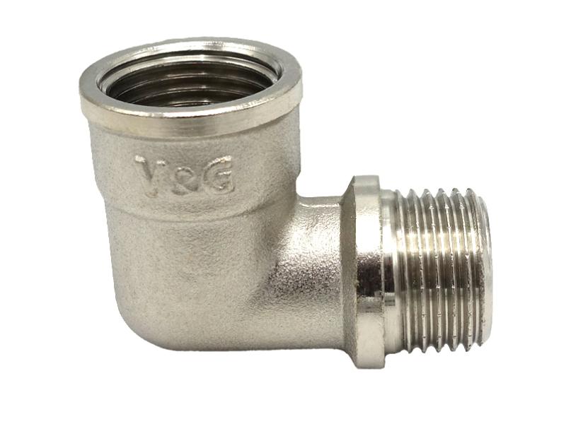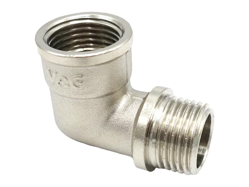 Латунные резьбовые фитинги V&G (никелированные, хромированные) применяются для монтажа трубопроводных систем (водопроводных, хозяйственно-питьевых, отопительных) для транспортировки любых сред, не агрессивных к материалам изделия. ТЕХНИЧЕСКИЕ ХАРАКТЕРИСТИКИ: давление рабочее 2,5 МПа (25 бар) (для размеров от 1/2" до 1", кроме VG-204301, VG-204302); 1,6 МПа (16 бар) (для размеров от 1 1/4" до 2"). Рабочая температура: от -20 до +200 °С (для изделий без уплотнения); от -20 до +130 °С (для изделий с уплотнением EPDM). Материал корпуса: латунь CW617N (ЛС 59-2). Угольник полдюйма никелированный внутренняя - наружная резьба применяется там, где необходимо создать поворот в трубопроводе под определенным углом. Другие названия этого фитинга: резьбовое колено, угол латунный.