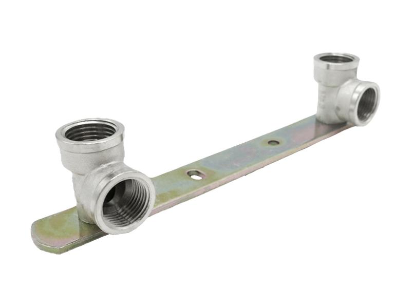 Латунные резьбовые фитинги V&G (никелированные, хромированные) применяются для монтажа трубопроводных систем (водопроводных, хозяйственно-питьевых, отопительных) для транспортировки любых сред, не агрессивных к материалам изделия. ТЕХНИЧЕСКИЕ ХАРАКТЕРИСТИКИ: давление рабочее 2,5 МПа (25 бар) (для размеров от 1/2" до 1", кроме VG-204301, VG-204302); 1,6 МПа (16 бар) (для размеров от 1 1/4" до 2"). Рабочая температура: от -20 до +200 °С (для изделий без уплотнения); от -20 до +130 °С (для изделий с уплотнением EPDM). Материал корпуса: латунь CW617N (ЛС 59-2). Латунная резьбовая никелированная планка с водорозетками Valogin – это фитинг, состоящий из двух угольников, соединенных одной настенной планкой, с помощью которой этот фитинг легко фиксируется на любой вертикальной поверхности. Очень часто резьбовые планки с водорозетками, применяются для монтажа смесителей.