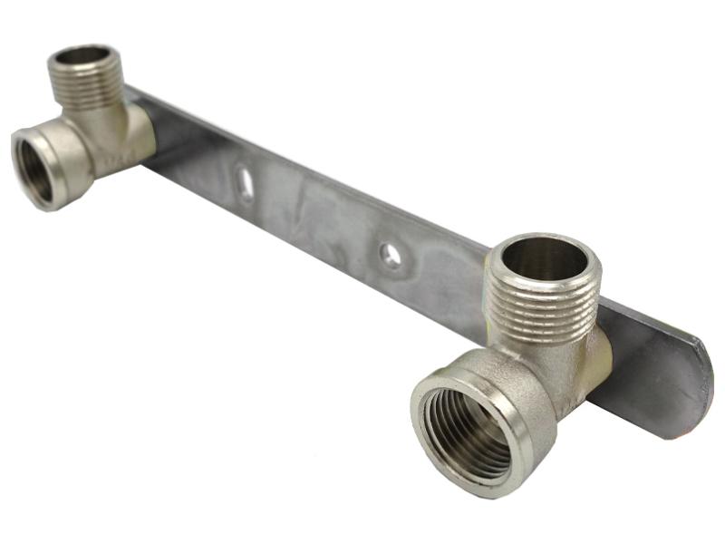 Латунные резьбовые фитинги V&G (никелированные, хромированные) применяются для монтажа трубопроводных систем (водопроводных, хозяйственно-питьевых, отопительных) для транспортировки любых сред, не агрессивных к материалам изделия. ТЕХНИЧЕСКИЕ ХАРАКТЕРИСТИКИ: давление рабочее 2,5 МПа (25 бар) (для размеров от 1/2" до 1", кроме VG-204301, VG-204302); 1,6 МПа (16 бар) (для размеров от 1 1/4" до 2"). Рабочая температура: от -20 до +200 °С (для изделий без уплотнения); от -20 до +130 °С (для изделий с уплотнением EPDM). Материал корпуса: латунь CW617N (ЛС 59-2). Латунная резьбовая никелированная планка с водорозетками Valogin – это фитинг, состоящий из двух угольников, соединенных одной настенной планкой, с помощью которой этот фитинг легко фиксируется на любой вертикальной поверхности. Очень часто резьбовые планки с водорозетками, применяются для монтажа смесителей.