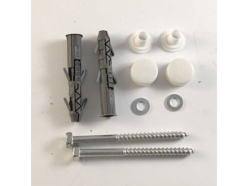 Комплект креплений для напольной установки унитаза и биде производства Украины. Продается в полиэтиленовом пакете с крепким картонным держателем для подвеса. Комплектация: Шуруп с шестигранной головкой 6х80 мм нержавеющая сталь - 2 шт. Дюбель для шурупа 10х60 мм полипропилен - 2 шт. Шайба плоская 6х12 мм нержавеющая сталь - 2 шт. Декоративные колпачки полипропилен - 4 шт.