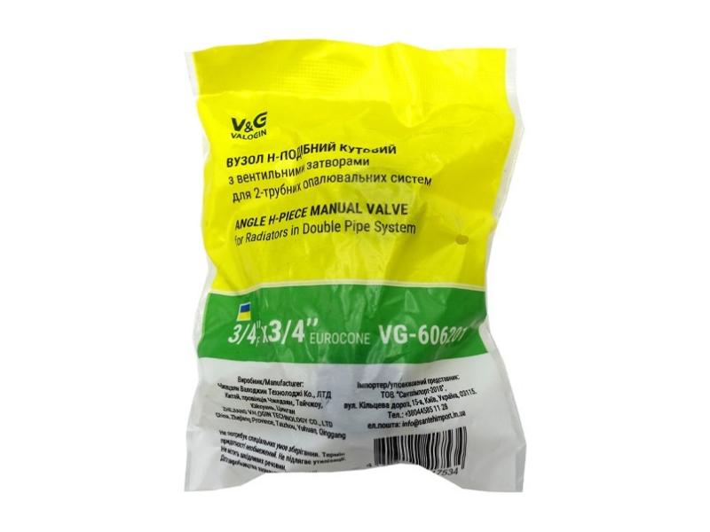 Узел нижнего подключения радиатора Valogin угловой 3/4"В x 3/4" евроконус VG-606201 8/24 шт