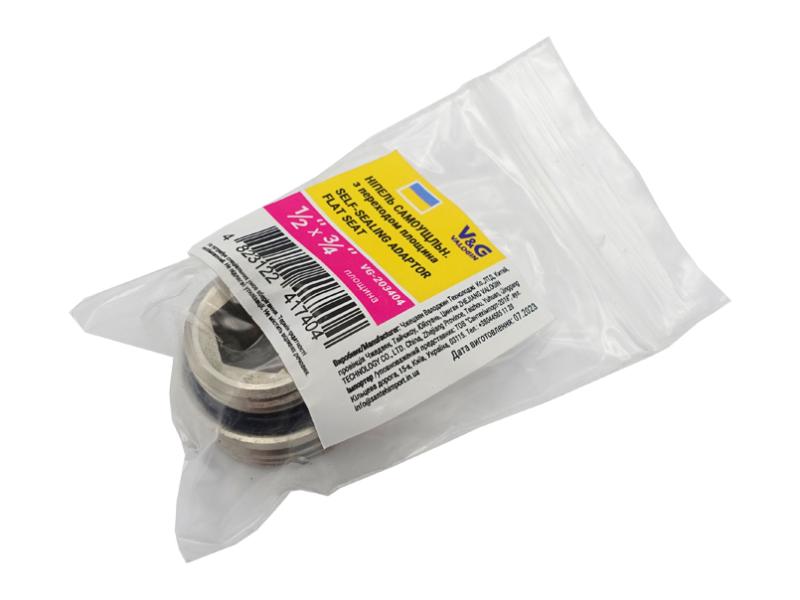 Ниппель самоуплотнительный Valogin 1/2"Н х 3/4"Н с прокладкой под плоскость VG-203404