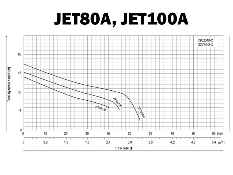 Насосы серии JET отлично подойдут для перекачки чистой воды и химически неагрессивных жидкостей. Могут применяться в быту и промышленности для автоматической подачи воды в комплексе с резервуарами и автоматическими агрегатами, поддержания давления, для полива огородов, садов и т.д. Устанавливать в местах, защищенных от атмосферного воздействия. Серия JET включает насос центробежного типа с одним рабочим колесом. Давление в центробежных насосах создается благодаря центробежной силе, возникающей при воздействии лопаток рабочего колеса на жидкость. Глубина подъема воды до 9 м достигается благодаря эжектору (трубке Вентури), установленному в корпусе насоса. Жидкость всасывается только частично подается в нагнетательный патрубок. Оставшаяся часть воды рециркулирует через эжектор, соединенный с камерой всасывания, создает в ней разрежение, необходимое для поднятия воды. Перед запуском нужно залить воду в насосную часть. Мощность насоса JET80A 0,55кВт, производительность 45л/мин, напор H46м. Достоинства: Статор электродвигателя из холоднокатаной стали Медная обмотка Встроенная термическая защита от перегрева электродвигателя (срабатывает при 80 градусах) Прочный чугунный корпус Рабочее колесо из латуни Вал из нержавеющей стали Устойчивое покрытие насыщенного синего цвета Технические характеристики Перекачиваемая жидкость: чистая вода Общая минерализация воды, не более 1500 г/м³ Максимальная температура перекачиваемой жидкости: +90°C Максимальная высота всасывания, м: 9 Материал корпуса: чугун Частота вращения, об/мин 2850 Напряжение, В: 220-240 Частота сети, Гц: 50 Класс защиты: IP44 Класс изоляции: B Масса, кг: 14.1 Гарантийный срок эксплуатации, мес: 24. Стандарты работы: IEC 60034-1 IEC 335-1 IEC 34-1 ISO 2548 Габариты самого насоса, мм: ш385*д195*в209