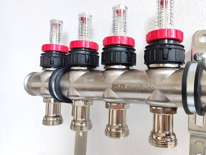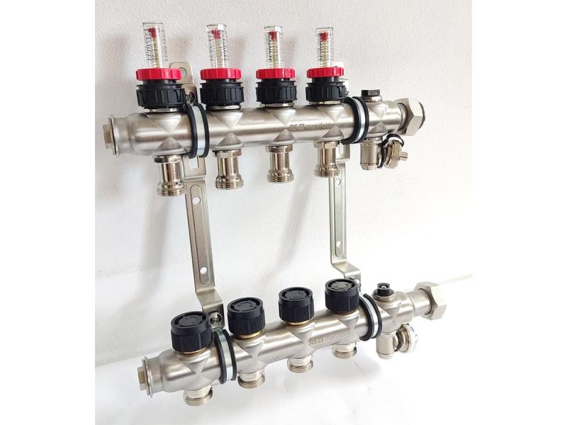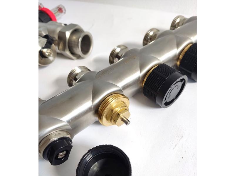 Коллекторная группа в сборе нерж.SS304 с воздухоотв. и дренажем 1"*3/4"* 3вых. RS-k
