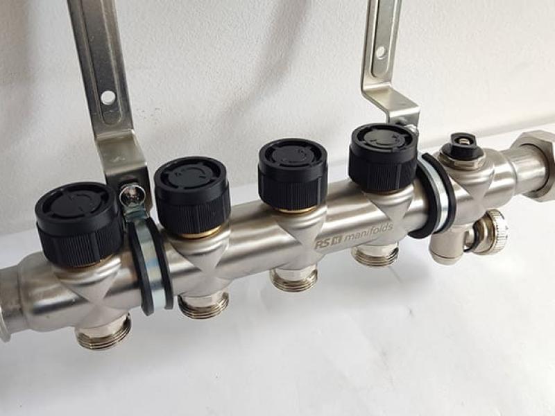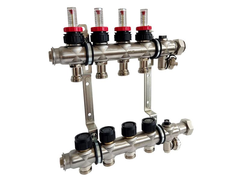 Коллекторная группа в сборе нерж.SS304 с воздухоотв. и дренажем 1"*3/4"* 6вых. RS-k