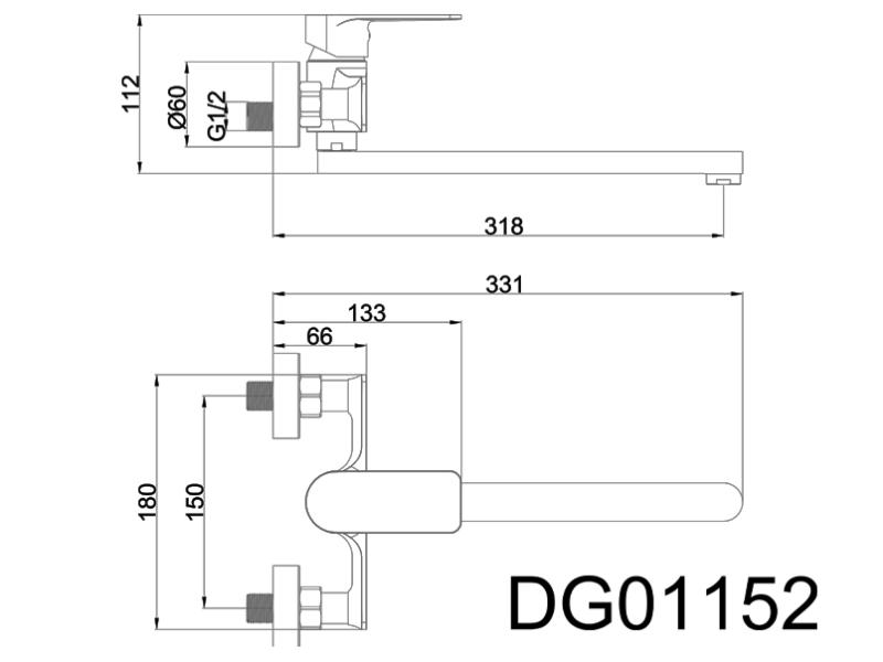 Смеситель для кухонной мойки AIM настенный черный матовый DG01152 (matte black)