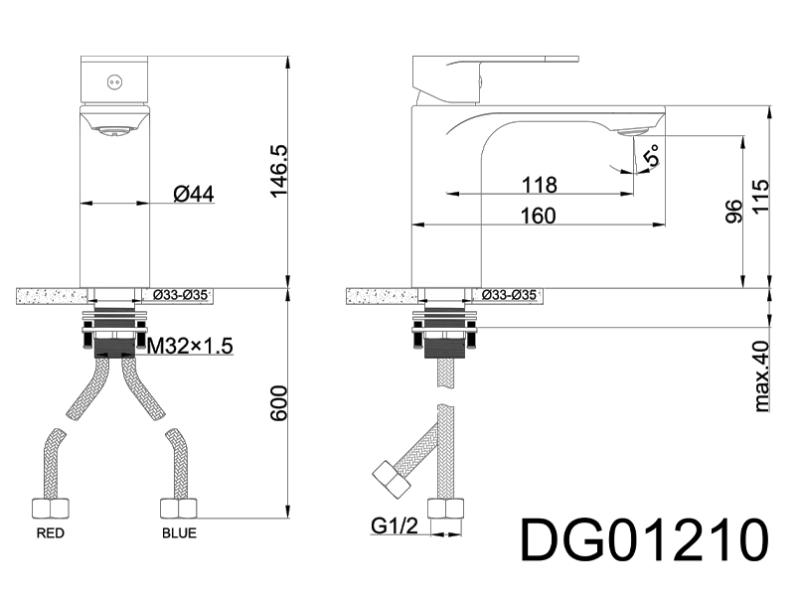 Смеситель для умывальника латунь AIM черный матовый DG01210 (matte black)