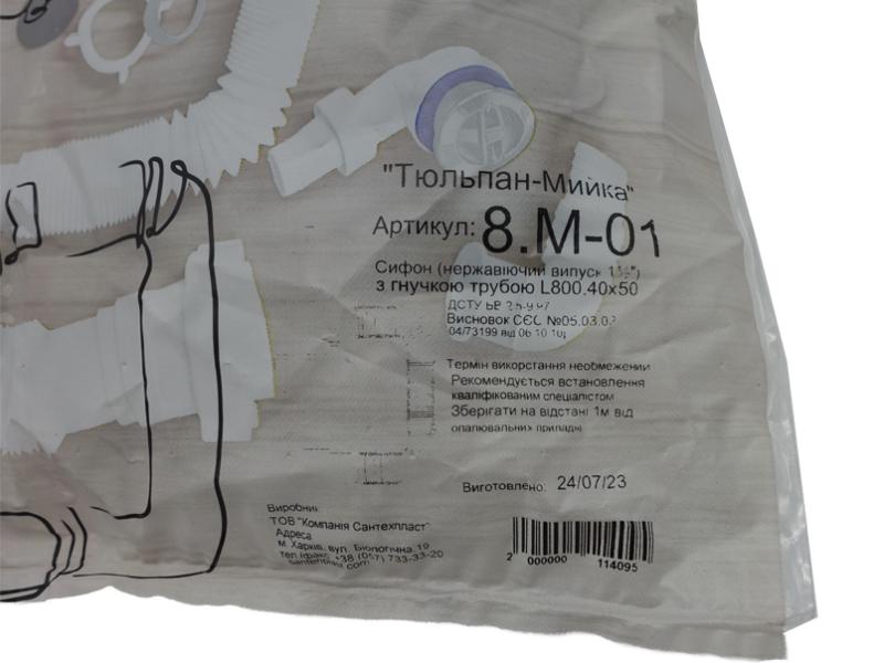 Сифон Перламутр Тюльпан 1 1/2" с еврошланг. нерж. выпуск COS 1/20