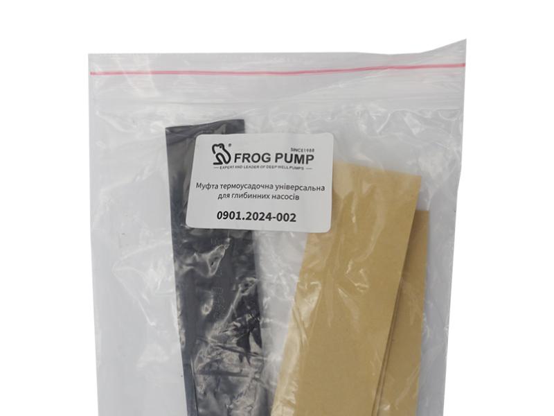 FROG набор термоусадочный для кабелей. Применяется при продлении кабеля насосов погружного типа для надежной электрической изоляции. Продается в полиэтилене. В каждой упаковке – книжечка-инструкция. Дату изготовления смотреть на упаковке. Хранить в упаковке в сухом месте. Срок службы не ограничен. Состав набора: наждачная бумага, гильзы под опрессовку, трубки для фазной изоляции