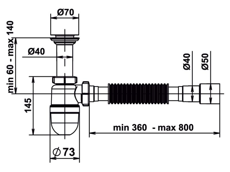 Сифон для раковины 11/2"х40 с литым выпуском, гофротрубой 40х40/50 MILLZ (1/45шт)