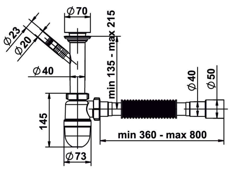 Сифон для раковины 11/2"х40 с литым выпуском, с отводом д/стиральной машины, гофротрубой 40х40/50 MILLZ 1/40