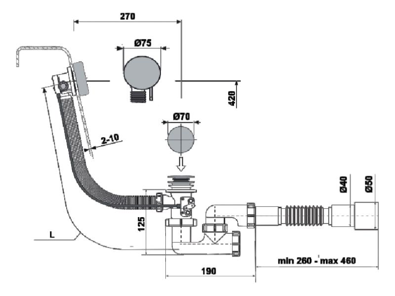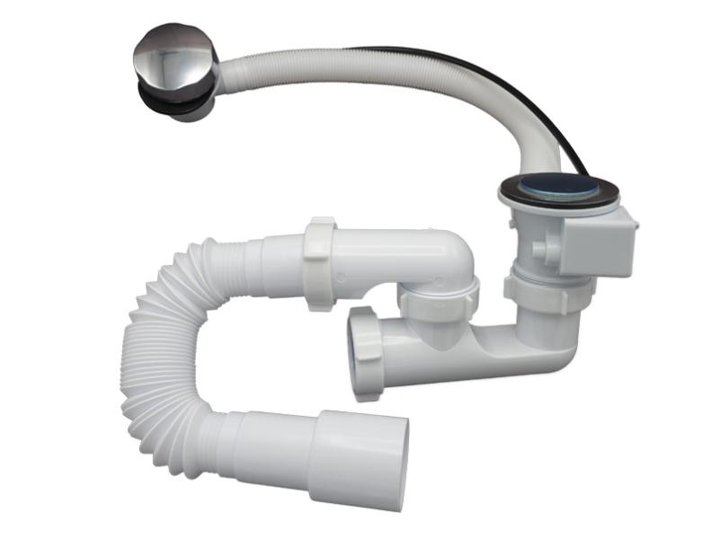Сифон для ванны с ревизией, полуавтомат.,(трос 580, ручка хром) и гофротрубой 40х40/50 MILLZ 1/30