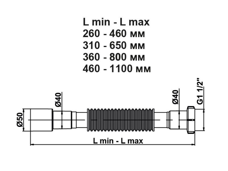 Гофротруба соединительная с накидной гайкой 1 1/2"*40/50 (360-800мм) MILLZ 1/100