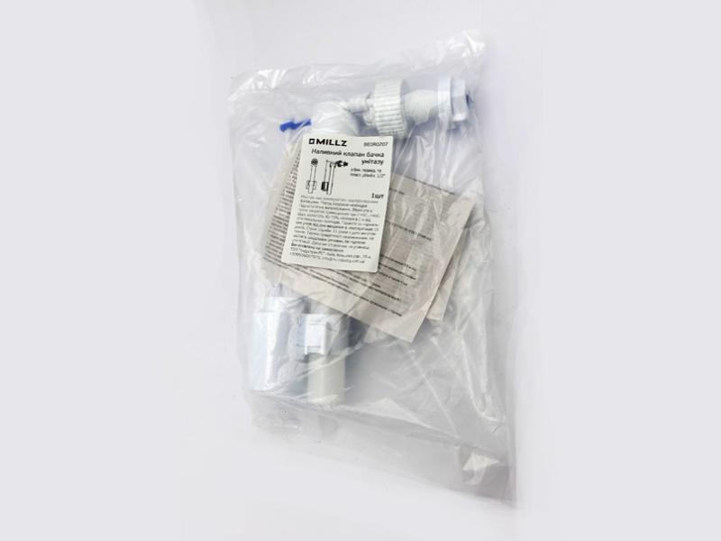 Наливной клапан бачка унитаза с бок. подводом и пласт.резьбой 1/2" MILLZ 1/70