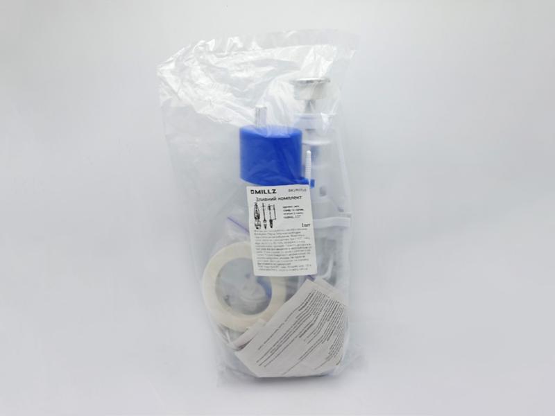 Набор для бачка унитаза MILLZ BK1R0710 состоит из сливного механизма с одним режимом слива и хромированной кнопкой и наливного клапана с нижней подводкой пластиковым штуцером с резьбой диаметром 1/2». Комплектуется двумя кольцами из эластичного вспененного ППУ, а также конусной и плоской шайбами из эластичного высококачественного PVC, обеспечивающими надежную герметизацию при установке клапана и механизма в бачке унитаза. Так же в комплект входит набор крепления бачка к унитазу с винтами, гайками и шайбам из нержавеющей стали. Область применения для подключения унитазного бачка с нижней подводкой к сети водоснабжения для автоматического наполнения унитазного бачка водой для слива воды из бачка унитаза для бачка унитаза со сливным отверстием Ø60-70 мм Технические характеристики присоединительный размер к сети водоснабжения G1/2» диапазон рабочих давлений 0,05-1,0 Мпа время заполнения бачка в объеме 6,0 л не более 150 секунд стабильность уровня наполнения унитазного бачка водой не более +/-2 мм уровень шума при работе не более 50 дБА установленный ресурс не менее 150000 циклов высота комплектного бачка с крышкой 330-400 мм диаметр присоединительного отверстия в бачке унитаза 60-70 мм количество режимов слива - 1 средний расход воды, подаваемой из бачка на смыв через арматуру не менее 2,5 л/сек усилие нажатия кнопки для запуска слива воды не более 20Н длина нержавеющих винтов крепления бачка к унитазу 82 мм Свойства комплектуется уплотнительными конусной и плоской шайбами для герметизации соединения наливного клапана с бачком унитаза конусная и плоская шайбы изготовлены из эластичного высококачественного PVC комплектуется двумя кольцами из эластичного вспененного ППУ, обеспечивающими надежную герметизацию при установке сливного механизма в бачок унитаза, а так же при установке бачка унитаза на полочку унитаза штуцер резьбовой из высококачественного пластика в комплект входит набор крепления бачка к унитазу винты, гайки и шайбы для крепления бачка к унитазу изготовлены из нержавеющей стали кнопка и декоративное кольцо кнопки пластмассовые с хромированным покрытием рабочий диапазон температур от 0 до +95° C