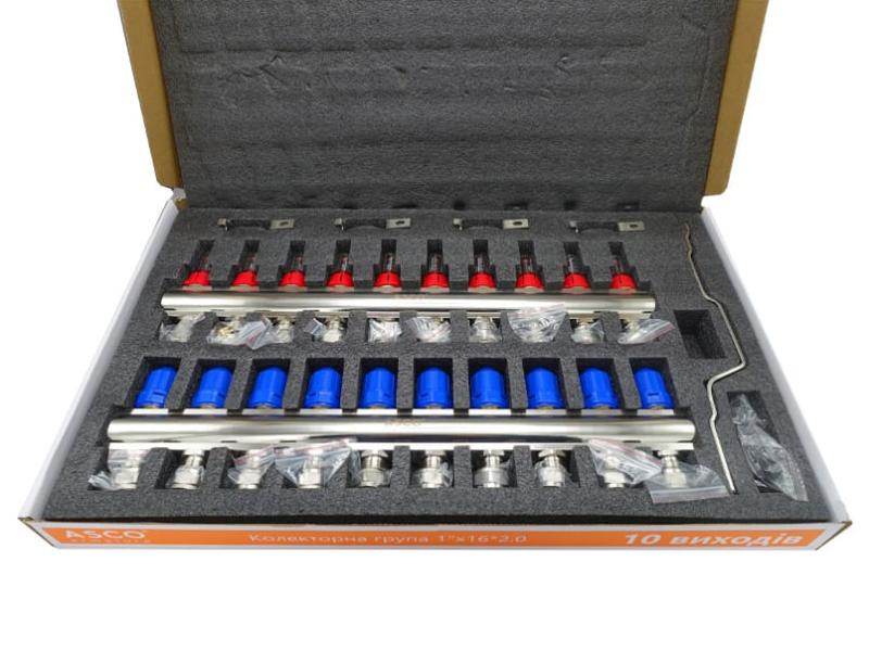 Коллекторная группа ASCO 1"х3/4" 10 выходов с евроконусами (16х2.0) 1/3