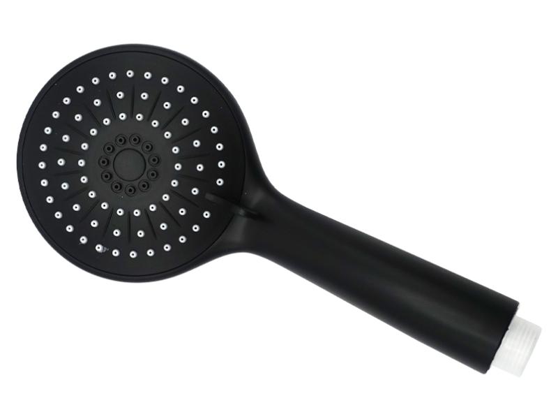 Лейка для ручного душа черного матового цвета представляет собой удачное сочетание современного дизайна и функциональности. Изготовлена из износостойкого и безопасного пластика. На черной рабочей поверхности выделяются форсунки: черные крупные — по центру и небольшие серые — по кругу. Это позволяет формировать три режима душа. Выбрать любой из них можно с помощью поворотного диска. Благодаря выпуклой форме форсунок рабочую поверхность можно использовать в качестве массажной щетки во время приема душа. Лейку комфортно держать в руке. Она легкая и имеет удобные размеры: ее длина — 22,5 см, зона охвата — 12,5 см, диаметр диска — 10 см. Изделие не требует особого ухода и присоединяется к стандартному шлангу. Поставляется в картонной коробке размером 25 х 12 х 4,5 см. На упаковке есть штрихкод. Рабочая поверхность защищена прозрачным пластиком, выход для резьбы — заглушкой. Лейка дополнительно упакована в пупырчатую пленку, что не допускает получения царапин во время транспортировки. Гарантия — 2 года. Страна-производитель — Китай.