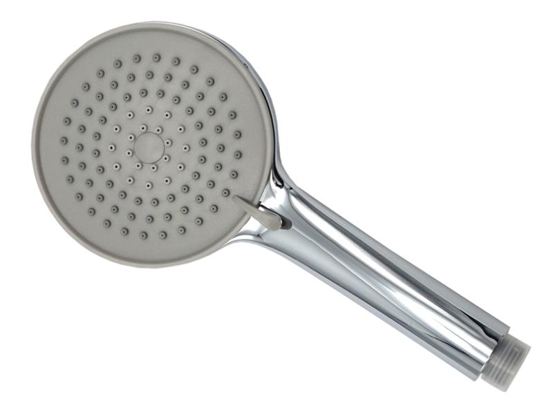 Душевая ручная лейка диаметром 11 см соединяет в себе удобство и функциональность. Изготовлена из безопасного и стойкого пластика, который обеспечивает изделию легкость и долговечность. Корпус покрыт хромом, что придает ему зеркального блеска. Рабочая поверхность выдержана в сером матовом цвете. Расположенные на ней разного размера форсунки формируют три режима подачи воды. Выбрать необходимый можно с помощью поворотного диска. Рабочую поверхность можно использовать вместо массажной щетки благодаря выпуклым форсункам. Лейку можно подключить к стандартному шлангу. Поставляется в прозрачном силиконовом пакете размером 36 х 14 см. Резьба дополнительно защищена пластиковой заглушкой, что не допускает появления царапин во время транспортировки. На упаковке есть штрихкод. Гарантия — 1 год. Страна-производитель — Китай.
