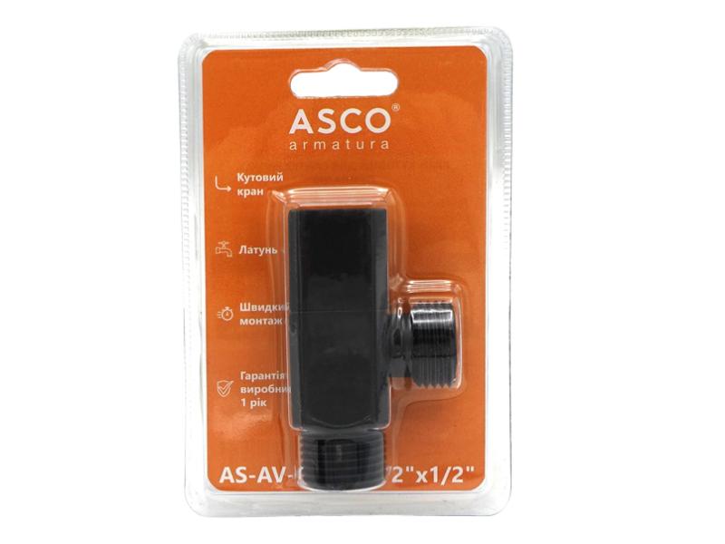 Кран угловой для сантехприборов ASCO 1/2" х 1/2" Matte Black AS-AV-009