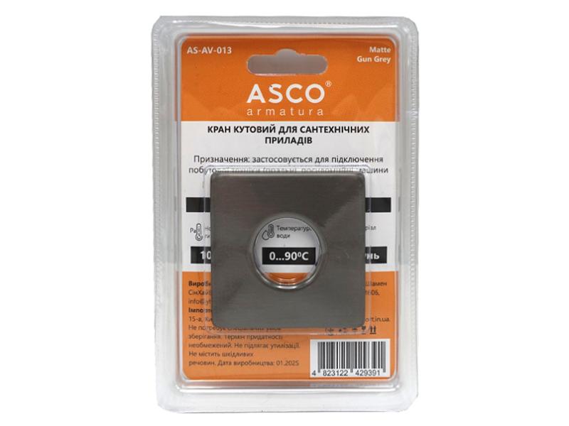 Кран угловой для сантехприборов ASCO 1/2" х 1/2" Matte Gun Grey AS-AV-013
