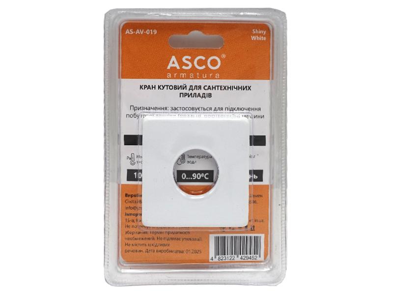 Кран угловой для сантехприборов ASCO 1/2" х 1/2" Shinny White AS-AV-019