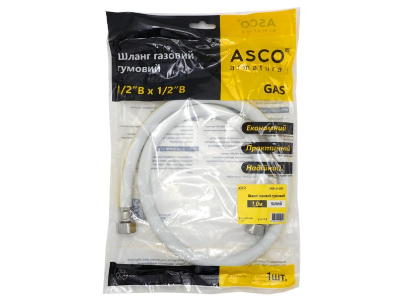 Шланг газовый ASCO резиновый белый 1/2" ВВ 0,3 м 1/100